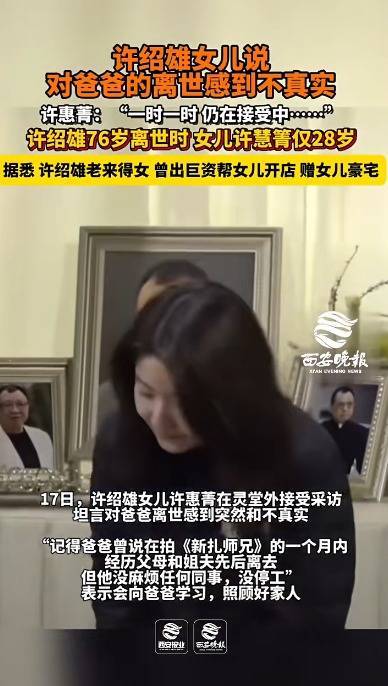 另据大象新闻消息,许绍雄女儿许惠菁在灵堂外接受采访,坦言对爸爸离世感到突然和不真实, “记得爸爸曾说在拍《新扎师兄》的一个月内经历父母和姐夫先后离去,但他没麻烦任何同事,没停工”,表示会向爸爸学习,照顾好家人。